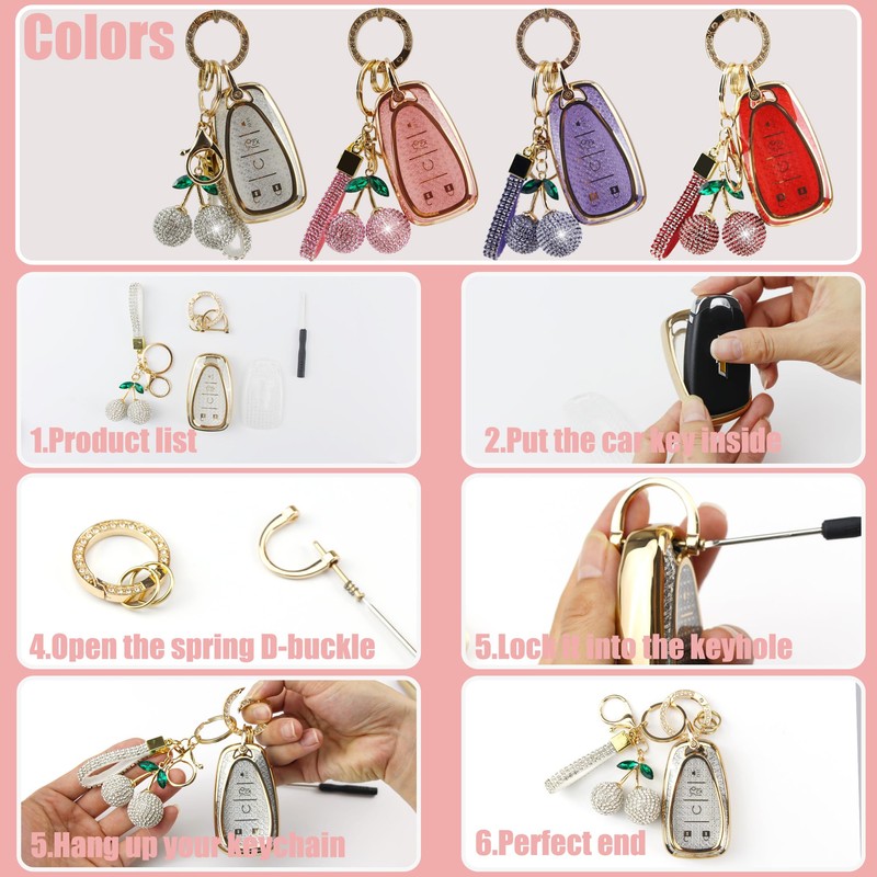 - [Gift-Ready Set] Includes 1 key cover, 1 cherry pendant, 1 gold D-ring keychain with dual rings, 1 mini screwdriver, and a step-by-step manual — a perfect gift for women who love cute accessories.