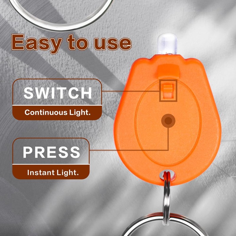 • Two Easy Use Methods: (1)Instant Key Light: Slightly pinch the middle of the keychain flashlights with your two fingers to activate instant light; (2)Continuous Light: Slide the On/Off Switch to turn on or turn off the mini LED keychain flashlight.