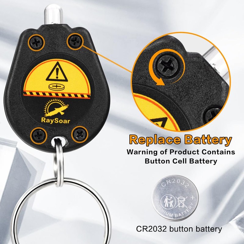 • Replaceable CR2032 Battery: The mini keychain red flashlight is installed one CR2032 battery, usually it gives you up to 12 hours of continuous use. You can replace the new batteries easily by user manual.