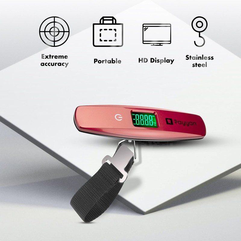 Rayyan Luggage Scale Digital Portable Suitcase Scale Hanging Scales Luggage Weighing Scale With Backlight And Tare Function 110/50Kg Capacity (Red)