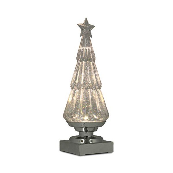 Raz 11.75 Inch Clear Acrylic Lighted Tree Water Lantern with Swirling Glitter Snow Globe - Silver Base
