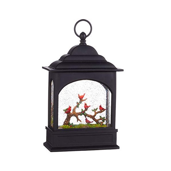 - 11 Inch Lighted Cardinal Water Lantern with 5 Cardinals perched on a branch