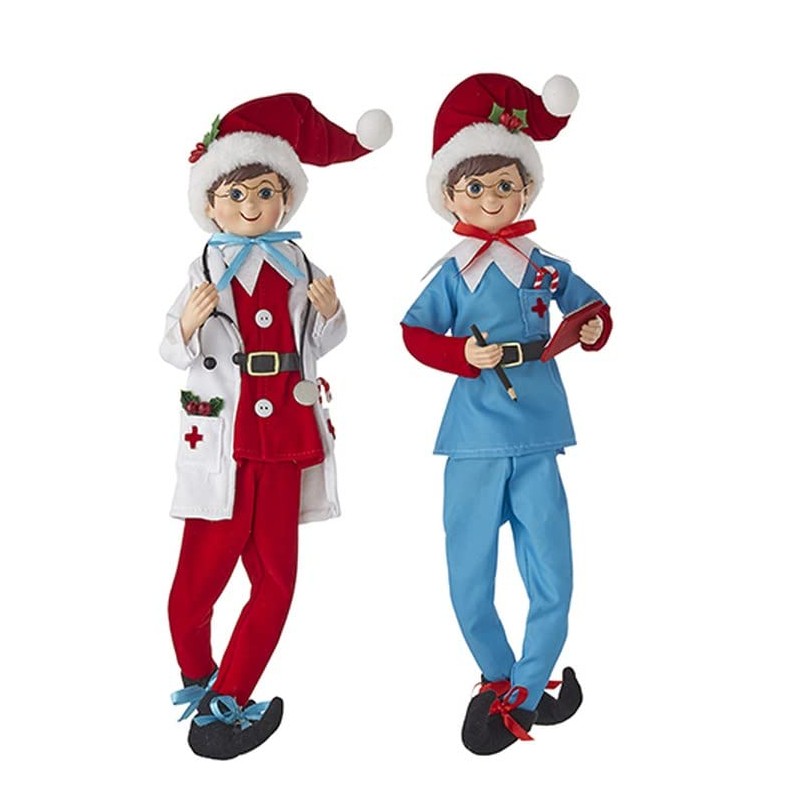 RAZ Imports 2022 Healthcare Heroes 16" Posable Doctor and Nurse Elf, Assortment of 2