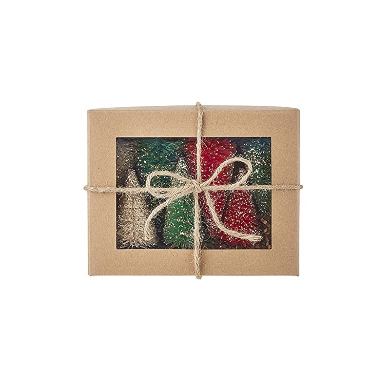 RAZ Imports 4.5" Box of RED, Green, and White Bottle Brush Trees,4.5 inches,Sisal and MDF