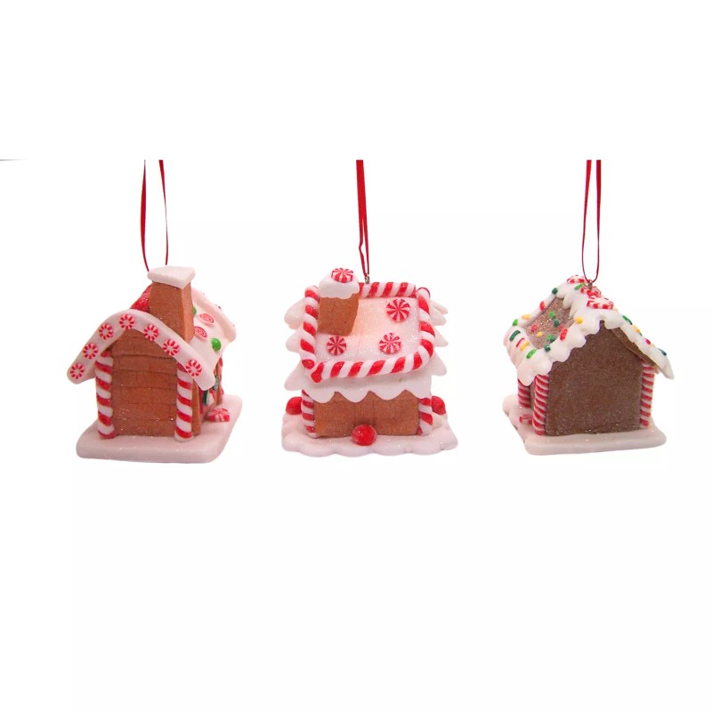 RAZ Imports Set of 3 Hanging Lighted Gingerbread Claydough House Ornaments, Festive Decor