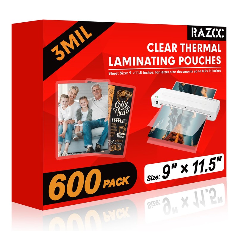 RAZCC Laminating Sheets, 600 Pack Clear Thermal Laminating Plastic Paper Laminator Sheets, 9 x 11.5-Inch, 3mil, Ideal Office or School Supplies