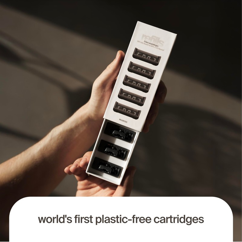 Razeco5 Plastic-Free Razor – 1 Steel Handle + 2 Plastic-Free Cartridges, 5 Blades – Shaving for a Zero Waste Routine (Face)
