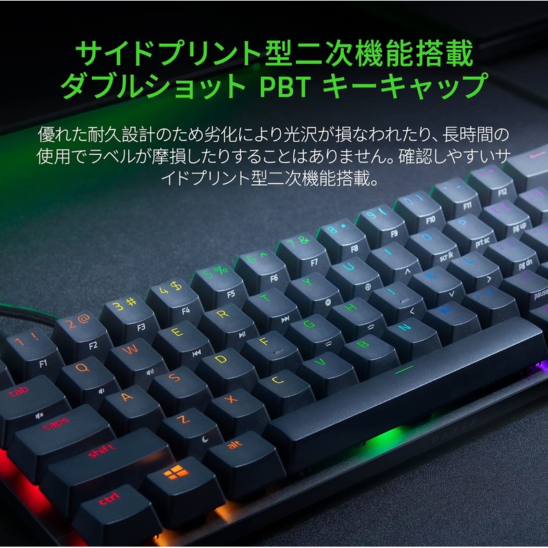 Razer Huntsman Mini JP Small Gaming Keyboard, Numeric Keypadless, Linear Optical Switch, Japanese, JP Array, 60% Layout, Optical Switch, Ultra High Speed, 0.05 inch (1.2 mm) Operation, Linear Texture,