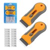 - [Package Content] - Our single-sided razor blade holder scraper set includes 2 pcs window scraper with razor blade and 40 pcs additional metal scraper razor blades are provided for easy replacement. The razor blade scraper for glass can work for hard and soft surface without scratches, meet your various needs