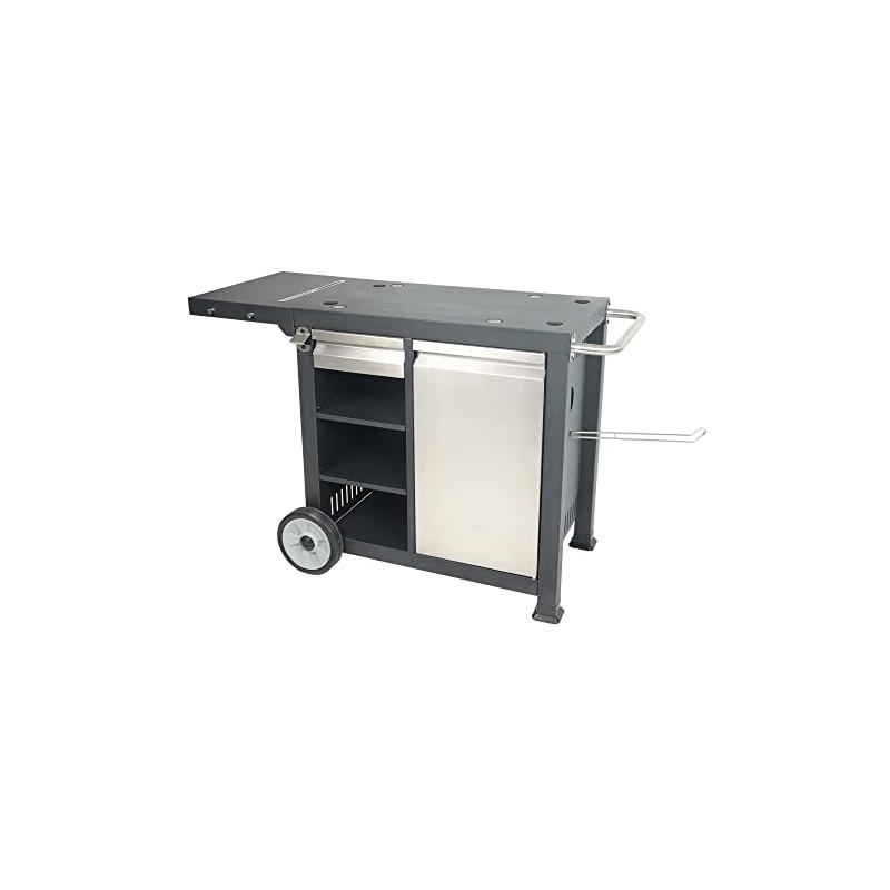 - Features multi-layer shelves with a convenient drawer to store all your tools and griddling accessories