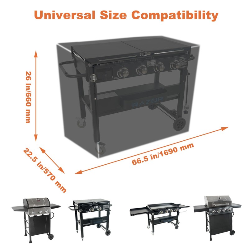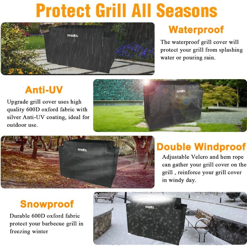 For outdoor grills: I used to worry about sudden rain after a barbecue, but now with this oven cover, even a storm can dry my grill! Razor Grill covers is made of 600D Oxford fabric and has a Pvc coating on the surface. It is fast hydrophobic to block rain/snow and does not leak water For northern users:Stayed flexible at -15℃ in winter—anti-cold-crack tech works! No need to replace covers annually." For lazy maintainers:Bird droppings rinse right off with a hose—easier to clean than my car cover