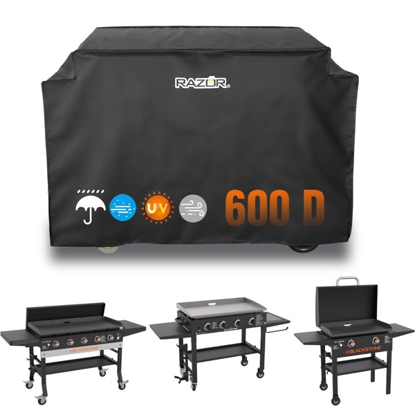 Razor Grill Cover for Pit Boss PB757GD/Blue Rhino Razor 4 Burner - 600D Waterproof UV Resistant with Drawstring, Windproof & Easy Clean Outdoor Protector Black (Medium)
