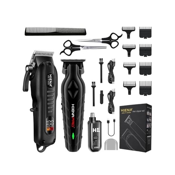 Razors HIENA Professional Rechargeable Hair Clipper Set,USB Charging, Small Portable Easy to use at Home,Fast Trim Without Pulling Hair(Black 3-Piece Set A)