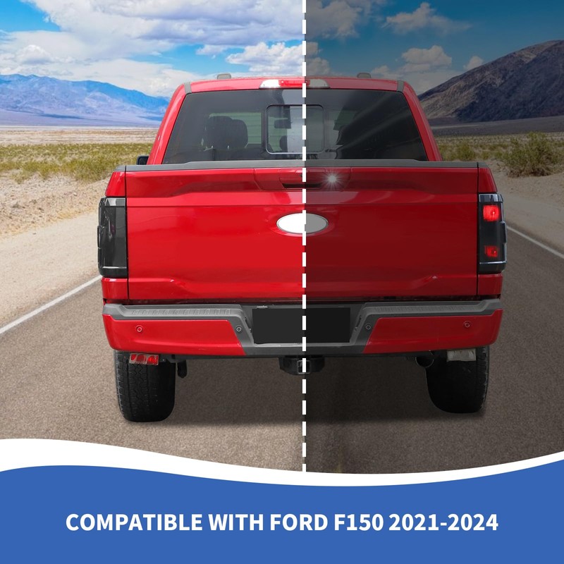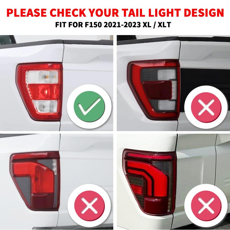 - FITMENT--Smoked tail light cover compatible with Ford F150 2021 2022 2023 XL XLT. (NOTE: NOT FIT King Ranch, Platinum, Limited, Tremor, Raptor, NOT FOR F150 2024-2025)
