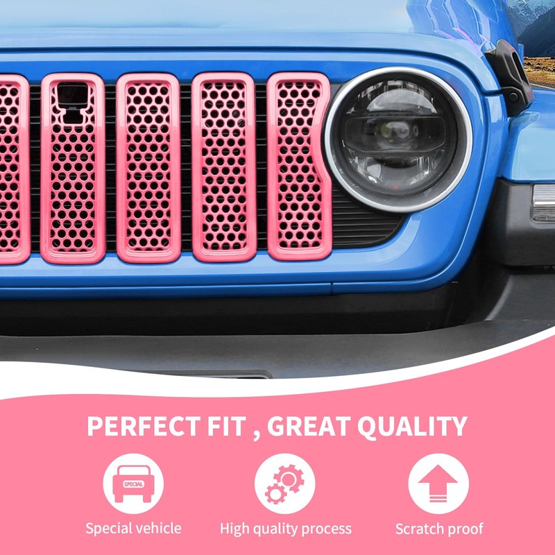 RAZPOY JL Grill Inserts, 7PCS Front Mesh Grille Cover Guard Compatible with 2024 Jeep Wrangler JL 4XE & Gladiator JT, Pink (with Camera)