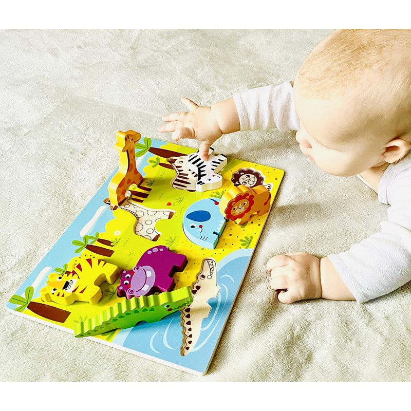 RB&G Wooden Puzzle with Large Pieces - Safari Animals Puzzle for Children from 1 Year Hippo & Co. Puzzle Baby