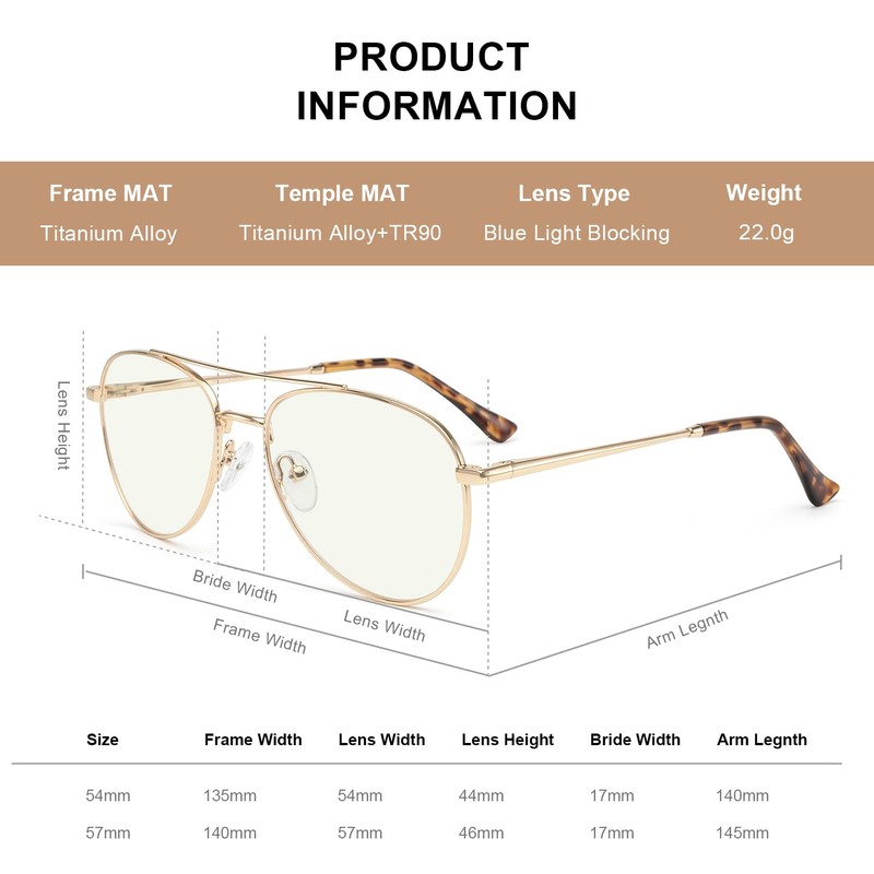 - 【HIGH QUALITY FRAME】- Classic Aviator glasses Frame.unique braided threaded temple design, vintage and fashionable.Ultra-light metal frame, flexible temple, durable and comfortable.Universal size fits most face shapes.