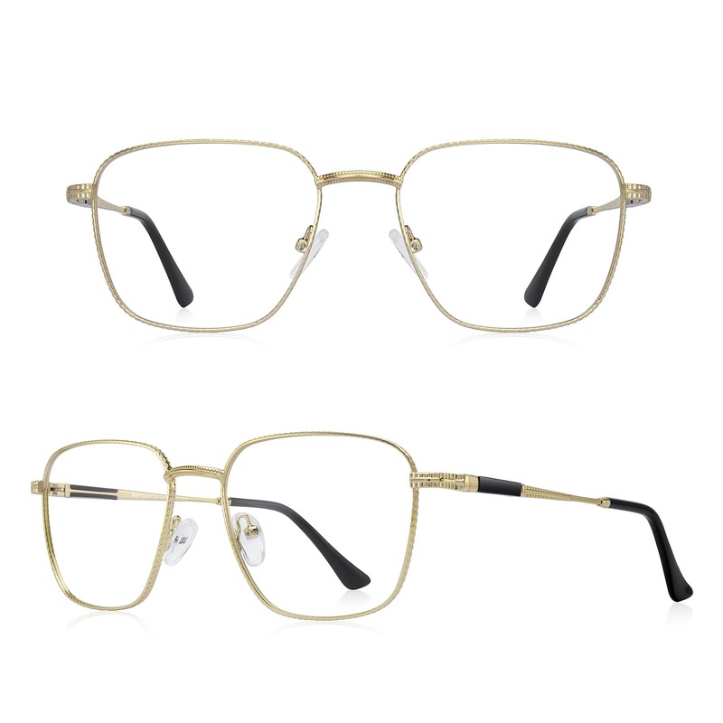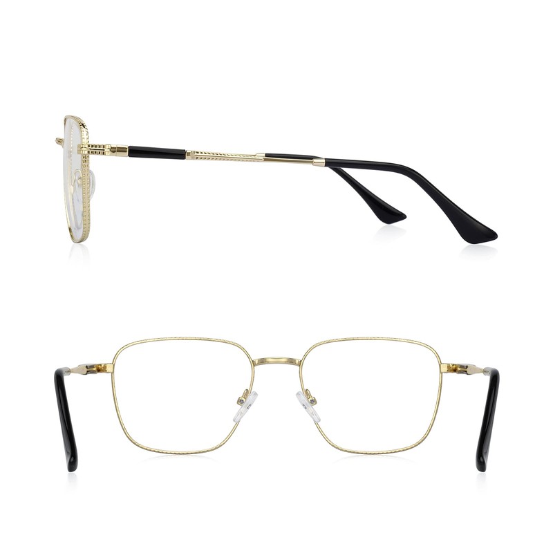 RB.Pilot Classic Square Reading Glasses for Men Women Light Blocking Computer Readers Spring Hinge Metal Frame Acetate Legs