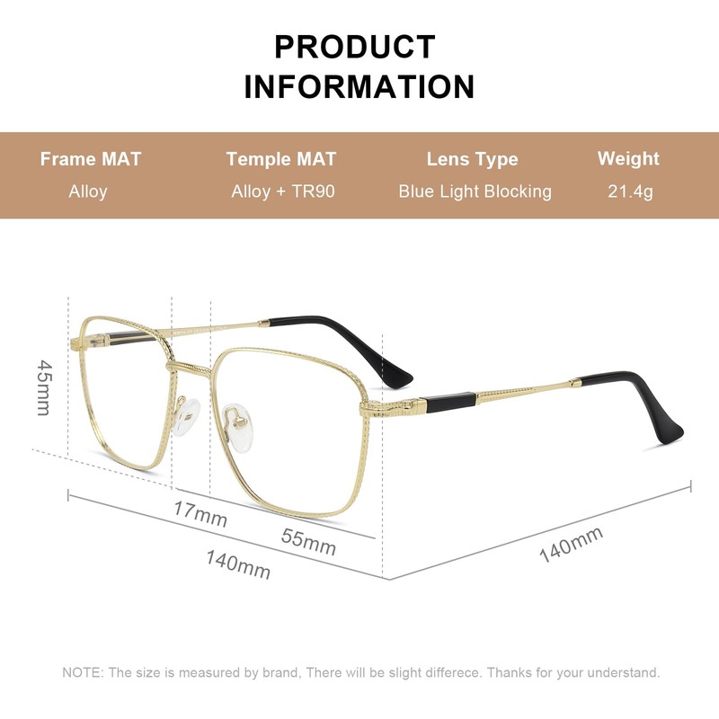 • 【ANTI BLUE LIGHT GLASSES】- Blue light blocker&UV400 Lenses, Alleviates visual fatigue and discomfort from browsing mobile phones, tablets, gaming and working under fluorescent lights with UVA/UVB protection and glare reduction.