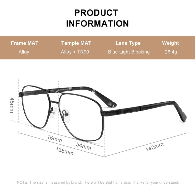 - 【PRODUCT SIZE】- Lens Width: 54mm(2.13inches) | Lens Height: 45mm(1.77inches) | Nose Bridge: 16mm(0.63inches) | Temple Length: 140mm(5.51inches).