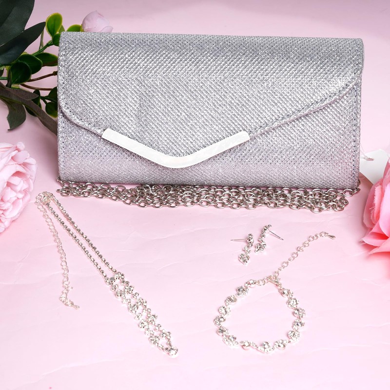 - Silver Rhinestone Jewelry Set: You will receive 1 piece of rhinestone clutch purse, 1 piece of glitter necklace, 1 pair of earrings and 1 piece of bracelet. The exquisite set can satisfy your dress needs at weddings, parties, prom and evening dinners.