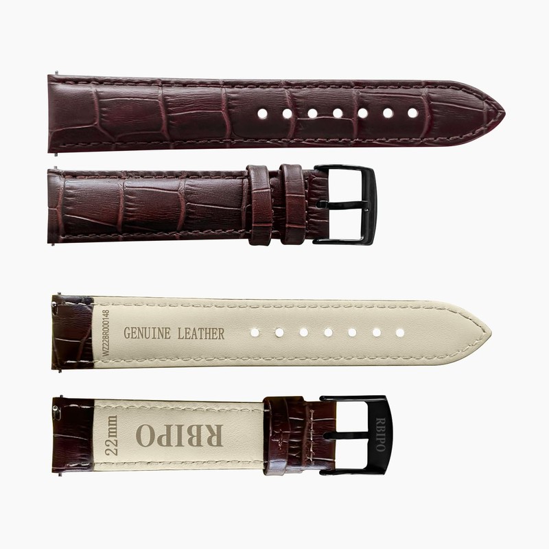 RBIPO 22mm Leather Watch Band Alligator Grain Quick Release Replacement Watch Strap for Men and Women