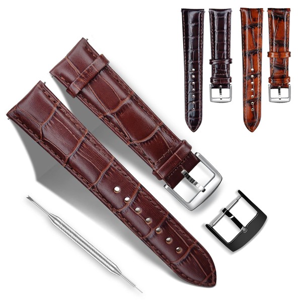 - Premium Craftsmanship: Crafted from top-grain cowhide with luxurious crocodile-embossed patterns, each strap features hand-stitched for ultimate durability. The supple leather molds comfortably to your wrist while maintaining its shape