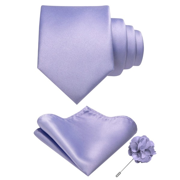 RBOCOTT Lavender Tie Necktie and Pocket Square with Lapel Pin Set(8cm-60)