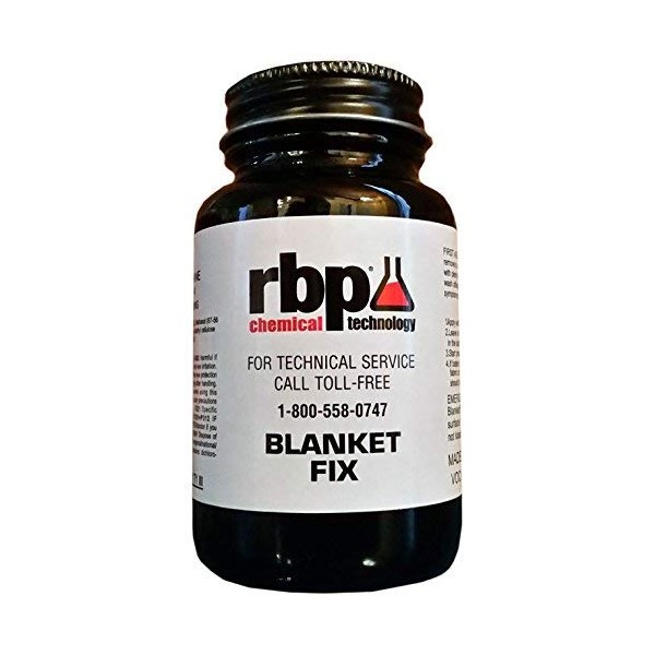 An easy to apply product that will prolong blanket life and promote uniform transfer of ink to paper. RBP Blanket Fix dries fast and raises low spots. It's specially designed to repair offset blankets. Directions: 1. Apply with brush to surface of blanket and battered low spots. 2. Leave on for one minute or less, depending upon the depressions in the batter blanket. Then wash blanket with solvent and dry. 3. Start press in usual manner, run ten sheets and inspect.
