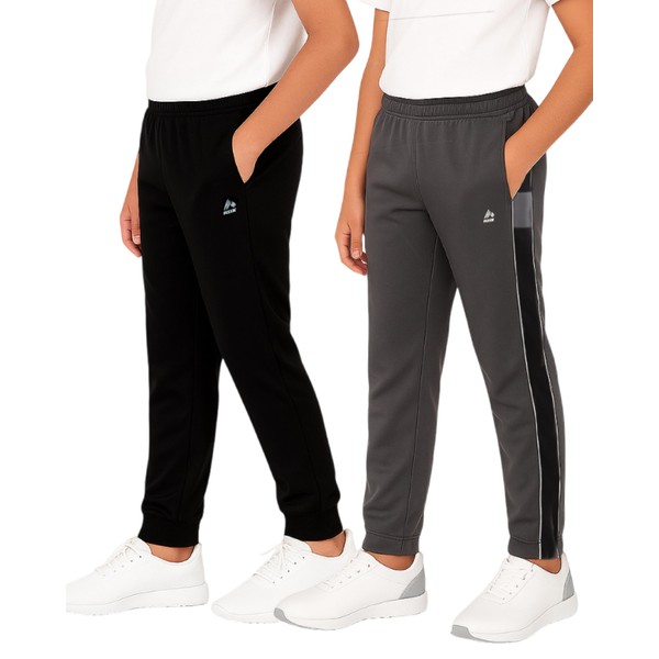 RBX Boys Sweatpants - 2 Pack Stretch Performance Tricot Activewear Boys Joggers Athletic Pants with Side Pockets (Size: 4-20), Size 10-12, Classic Grey/Black