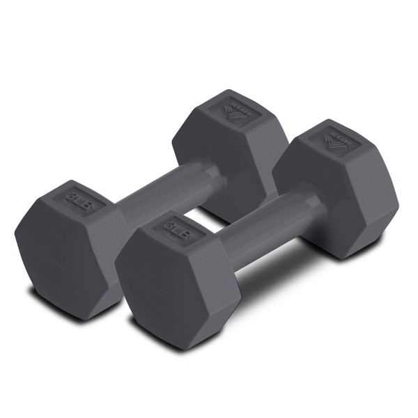 RBX Vinyl Coated Hand Weight Dumbbell Set (3lbs each) - Hex Shaped, Roll Free for Body Building/Sculpting/Strength Training Exercise, Cement Filled, (Set of 2)