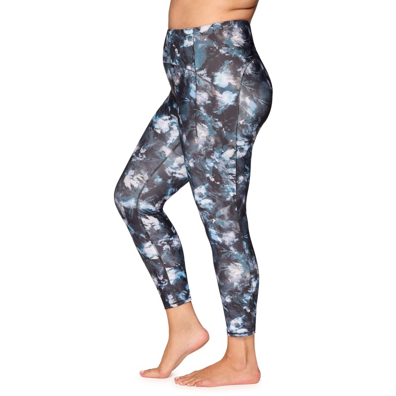 RBX Women's Plus Size Legging, Quick Drying Printed Workout Leggings for Women Squat Proof Yoga Legging with Pockets High Waisted Leggings for Running Moody Mist Blue Multi 2X