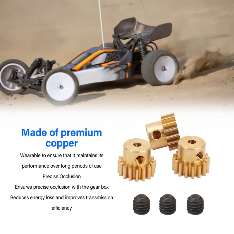 RC Motor Gear 16T M0.6 Copper RC Pinion Motor Gear for 1/12 1/16 RC Cars for 370 380 390 Motors 3pcs