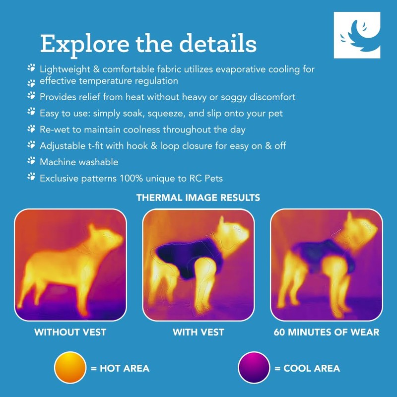 - COOLING. Special fabric that retains moisture and provides a cooling effect when worn keeping your furry friend cool during outdoor play on warm days.