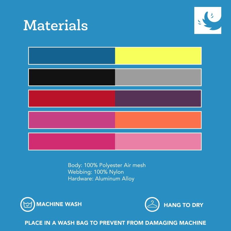 | Material Type: | Polyester air mesh, Nylon and Aluminum alloy |