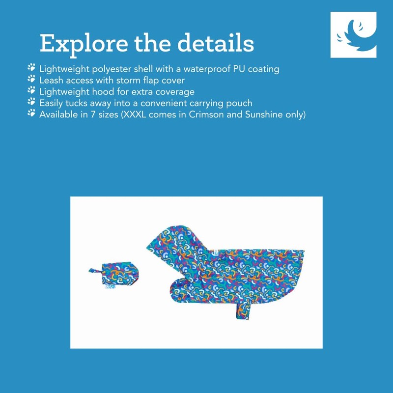 • WATERPROOF & LIGHTWEIGHT PROTECTION. Made from a 100% durable polyester shell with a waterproof PU coating, this rain poncho keeps your pet dry without weighing them down, making it ideal for wet weather walks.