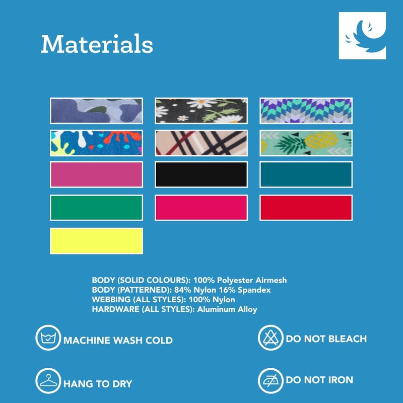 | Material Type: | Polyester Airmesh, Nylon, Spandex |