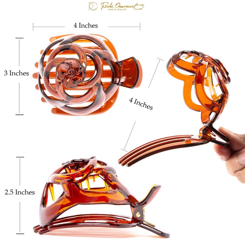 RC ROCHE ORNAMENT 6 Pcs Womens Stylish Rose Dome Comb Clamp Shell Plastic No Slip Strong Secure Grip Side Slide Bun Maker Beauty Accessory Hair Clip, Large Brown