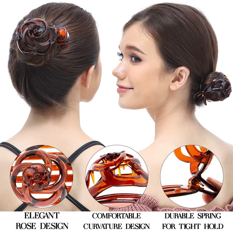 - Size – 6 count value pack; 4 inches length x 3 inches width x 2.5 inches height (10.16 cm x 7.62 cm x 6.35 cm) Large stylish Brown hair bun clips; plastic portable hair bun making tool fit in your purse bag; fashion hair clips
