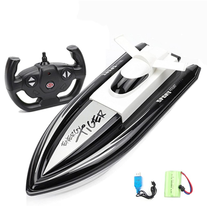 RC Speed Boat, Radio Boat, Radio Control, Enhanced Waterproof, High Speed, Shockproof, Water Toy, (Black)