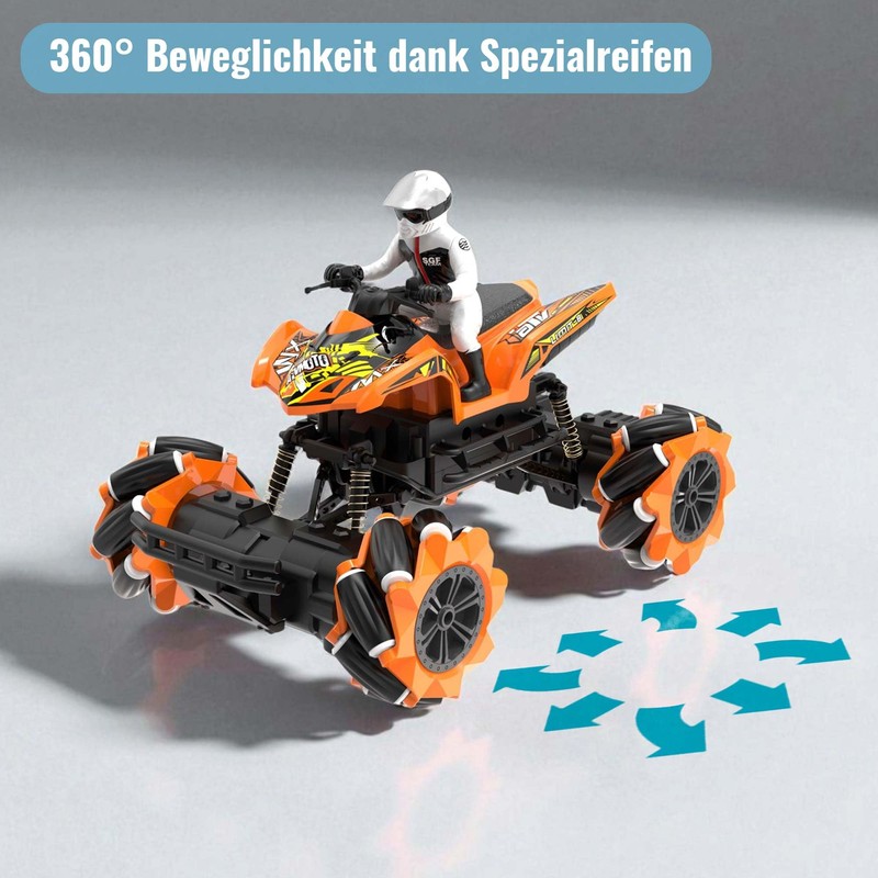 Thanks to the innovative tyres, side driving is possible. Omni-directional control in all directions. Cool music and dance function for even more fun. 2.4 GHz technology for interference-free connection. Drive multiple models at the same time. Overcome obstacles with two flexible axles. Very durable cover for a long service life. Extreme manoeuvrability thanks to the flexible design. 360° rotations at the touch of a button.
