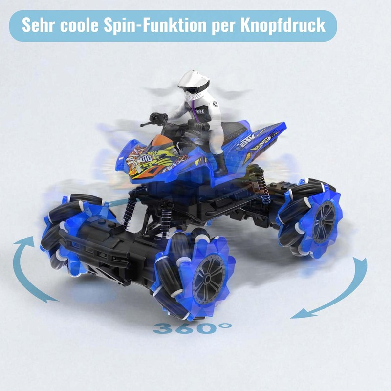 RC Stunt Quad 4WD Crawler, Monster Truck, Remote Controlled Car Vehicle with Music, LED Lighting, 360 Rotation, Omnidirectional Control with Flexible Axles, RTR Toy for Children and Adults