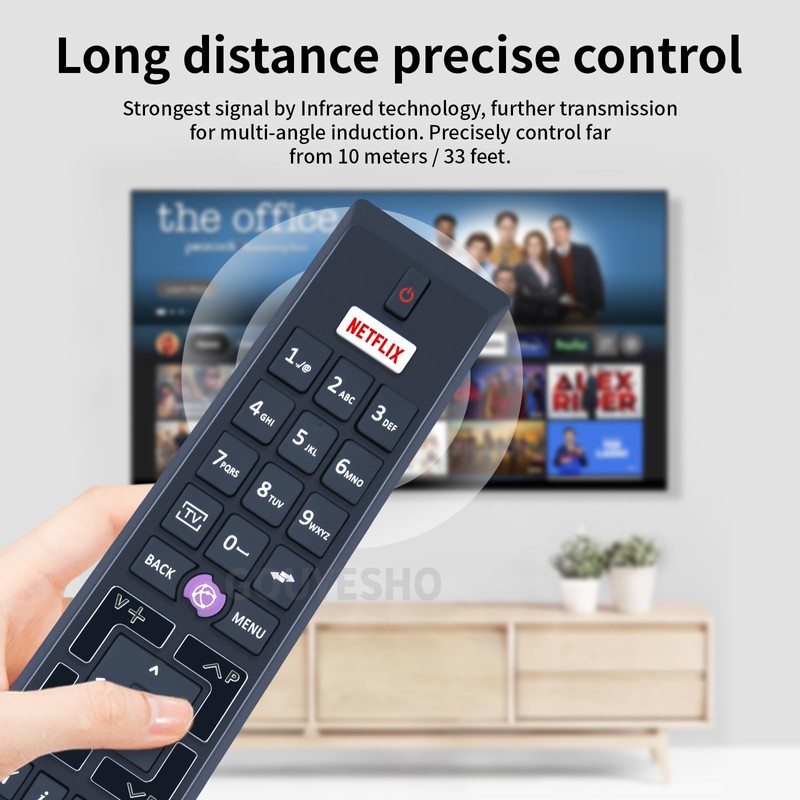 - New ABS material, better workmanship, ergonomic arc design ensure easy handling. The buttons react quickly and feel good. With a control distance of over 26 feet and an angle of more than 120 degrees, you have a better and free remote control experience.