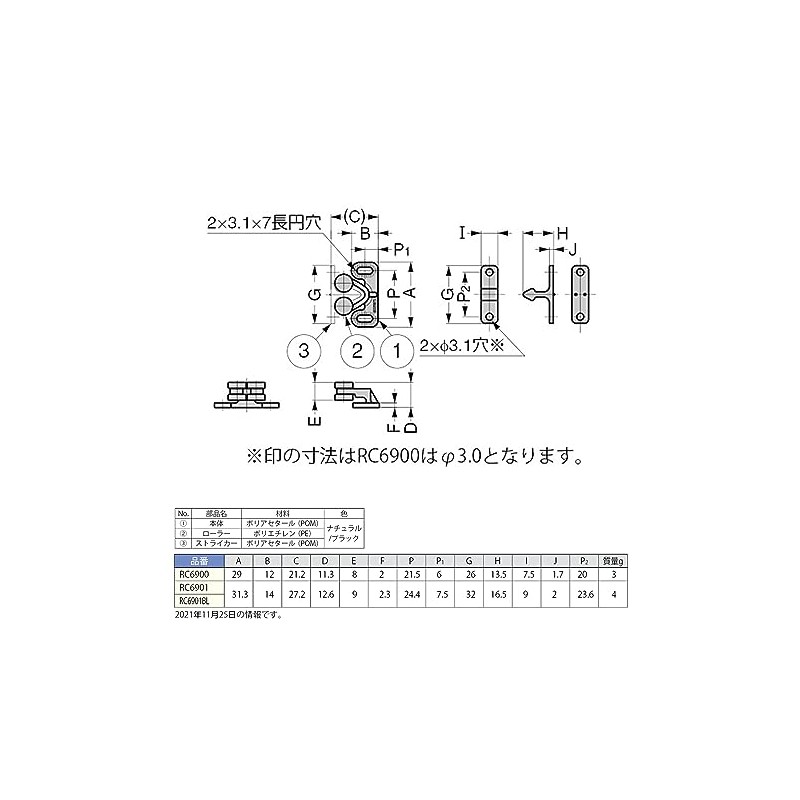 - 材料:ポリアセタール(POM)/ポリエチレン(PE)