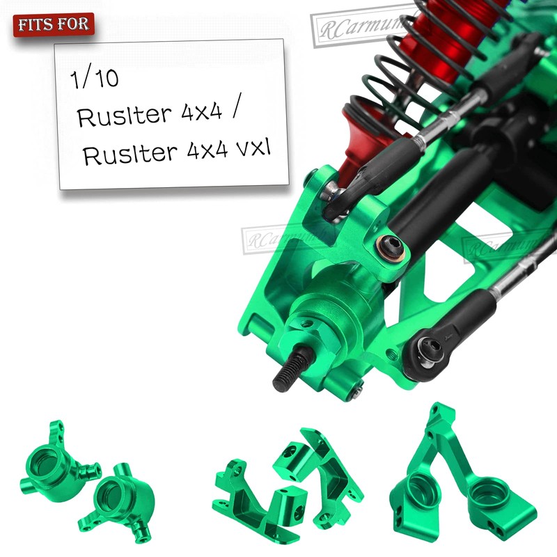 Rcarmumb Upgrades Part for 1/10 Traxxas Ruslter 4x4 VXL/Ruslter 4x4,Alloy Front Rear Suspension Arm,Steering Blocks,Caster Block,Rear Stub Axle Carriers,Steering Block,Shock Tower Set,Green