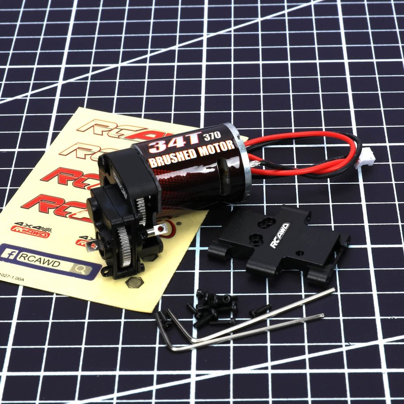 RCAWD New Enhanced 370 Motor with Metal Gearbox Combo Transmission for FMS 1/18 Series Black
