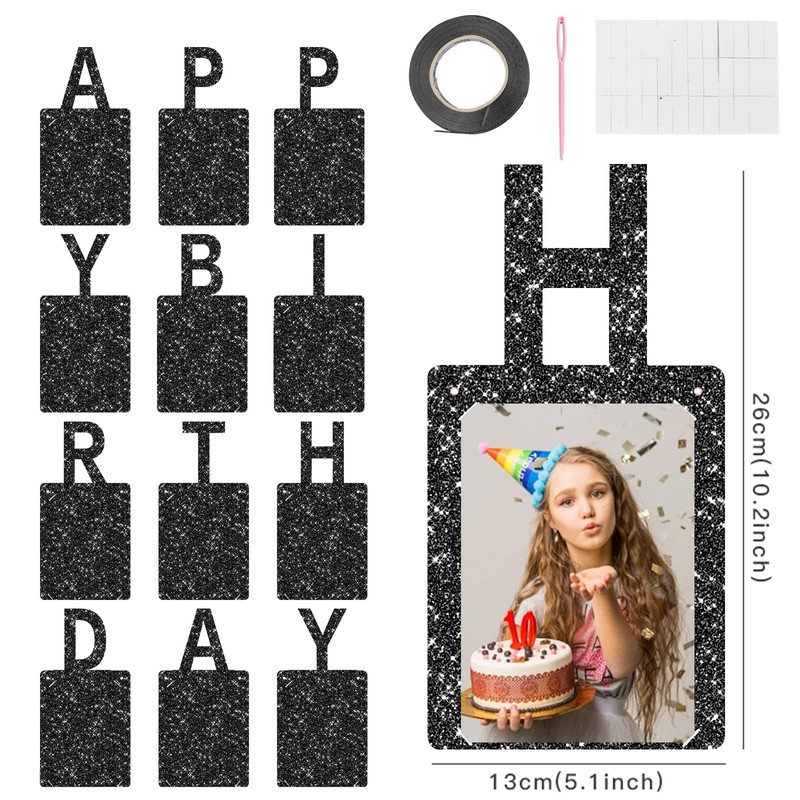 RCHBUDI Birthday Photo Banner Picture Banner and Photo Frame Suitable for Children and Adults' Birthday Party Decoration Background Black