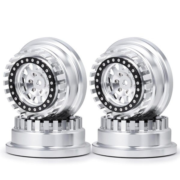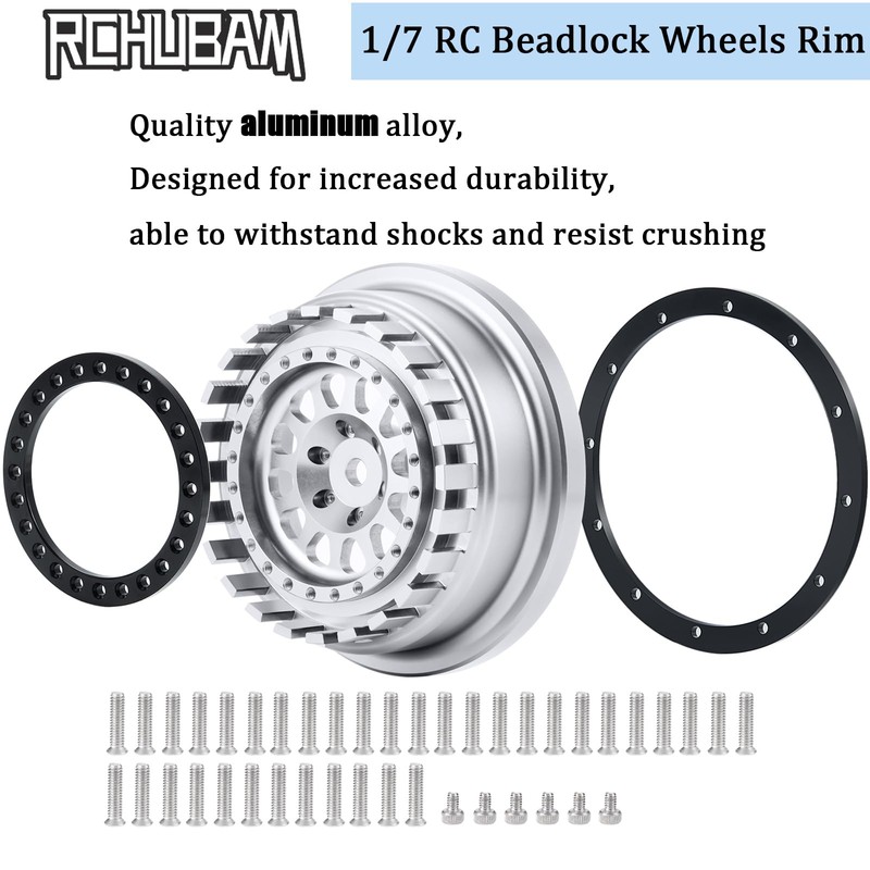RCHUBAM 1/7 RC Beadlock Wheels Rim 4PCS RC Rock Crawler Beadlock Wheels Compcatible with 1/7 UDR Unlimited Desert Racer RC Rock Crawler Buggy Truck Car Upgrades (Silver&Black)