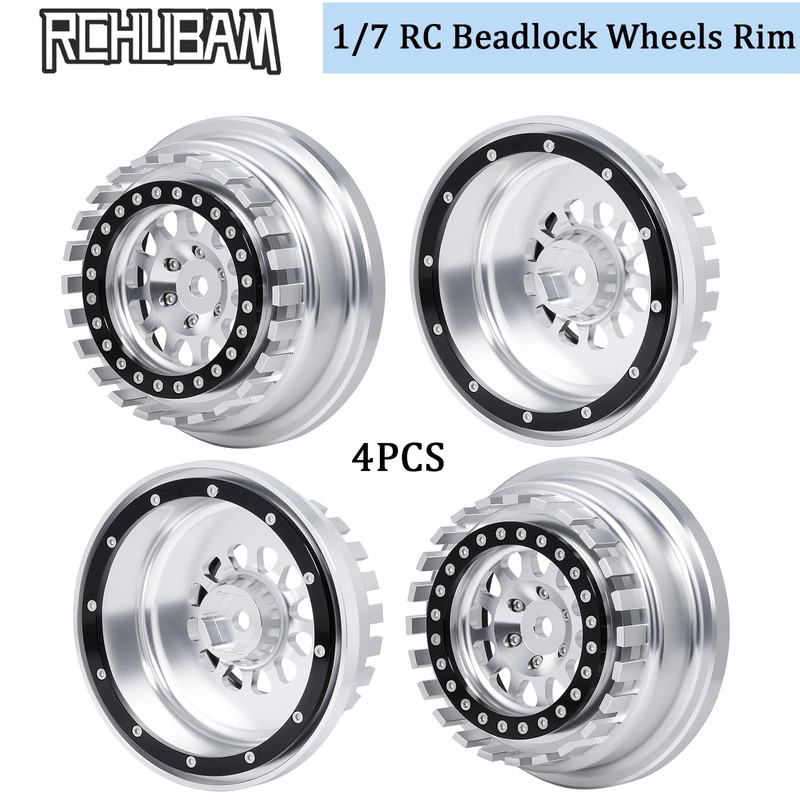 RCHUBAM 1/7 RC Beadlock Wheels Rim 4PCS RC Rock Crawler Beadlock Wheels Compc...