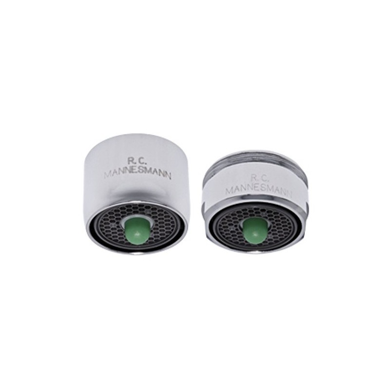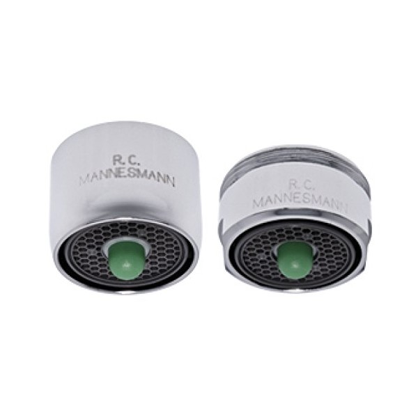 RCM Kitchen economy aerator with diverter knob 5/15 litres. The RCM Kitchen economy aerator has been designed for special use in the area of kitchen taps and has a diverter button with which you can change the limited flow to the standard flow at the touch of a button. Thanks to the placement of the button on the bottom of the aerator and the innovative technology behind it, the aerator remains small and handy despite its function. First aerator with underside diverter knob 5 or 15 litres flow at the touch of a button 60% saving. While a standard flow regulator allows more than 15 litres per minute to flow out, the RCM Kitchen energy-saving aerator is only 5 litres, so you save about 2/3 of the regular water consumption at the site of use. Furthermore, the RCM Kitchen economy aerator is available in the design as an internal thread M22 as well as in the design external thread M24.